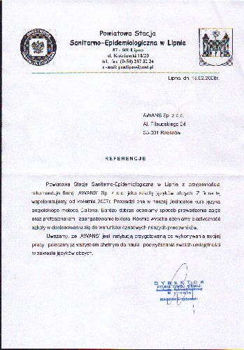 Referenecje od klientów z jednej z naszych szkół: teleniemiecki.pl, awans.edu.pl, teleenglish.pl lub elfy.pl.